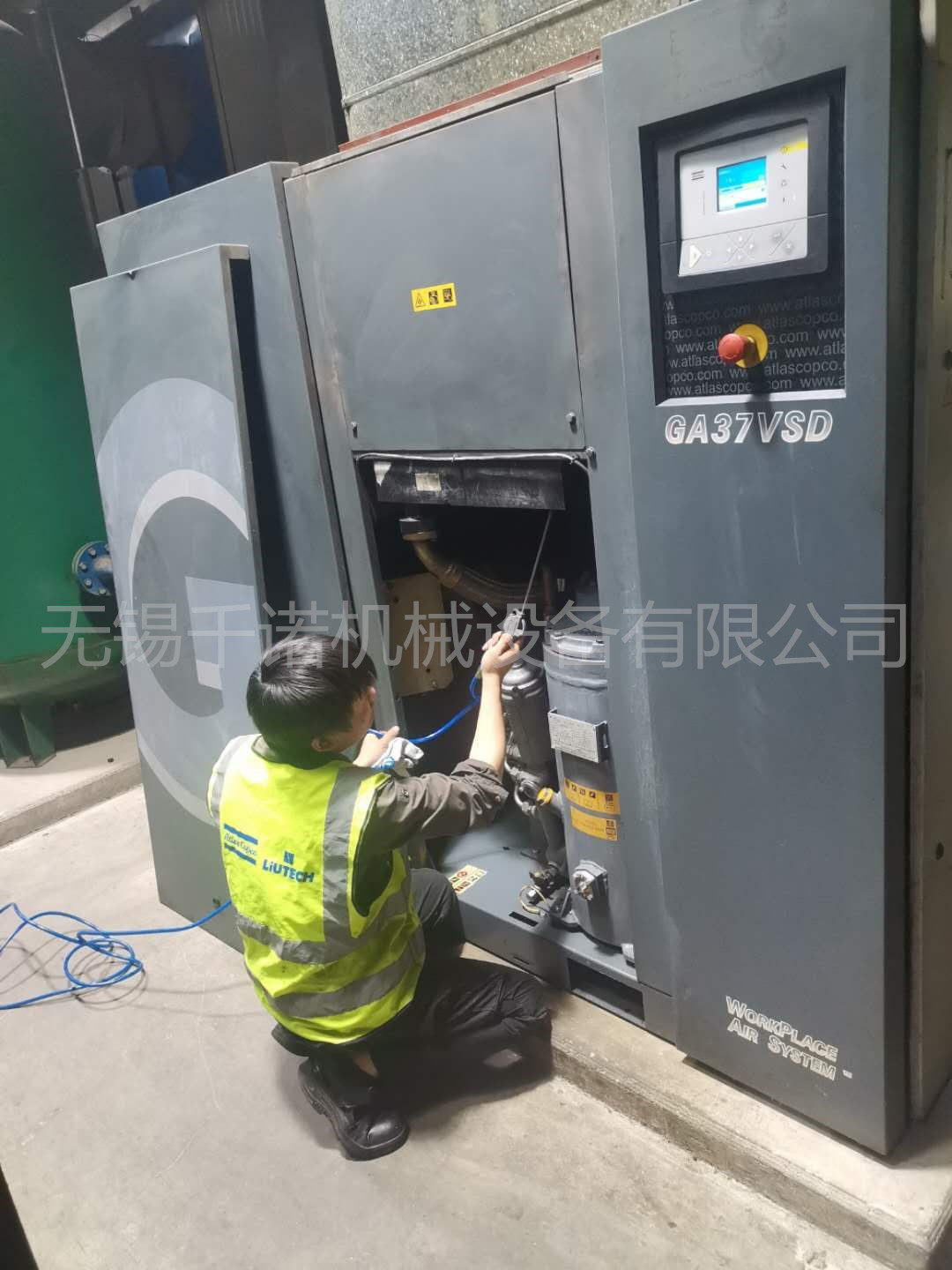 近日,無(wú)錫某工廠(chǎng)兩臺(tái)阿特拉斯空壓機(jī)到了維護(hù)保養(yǎng)的時(shí)間,由于到保養(yǎng)時(shí)間機(jī)器發(fā)出警報(bào),在和客戶(hù)溝通在和客戶(hù)溝通好準(zhǔn)確的保養(yǎng)時(shí)間后,特意安排我們的工作人員給該廠(chǎng)兩臺(tái)阿特拉斯空壓機(jī)進(jìn)行保養(yǎng)工作,更換空氣過(guò)濾器,機(jī)油過(guò)濾器,油氣分離器,專(zhuān)用機(jī)油以及過(guò)濾器濾芯,并進(jìn)行了散熱器清洗等一系列的維護(hù)保養(yǎng)服務(wù)工作。