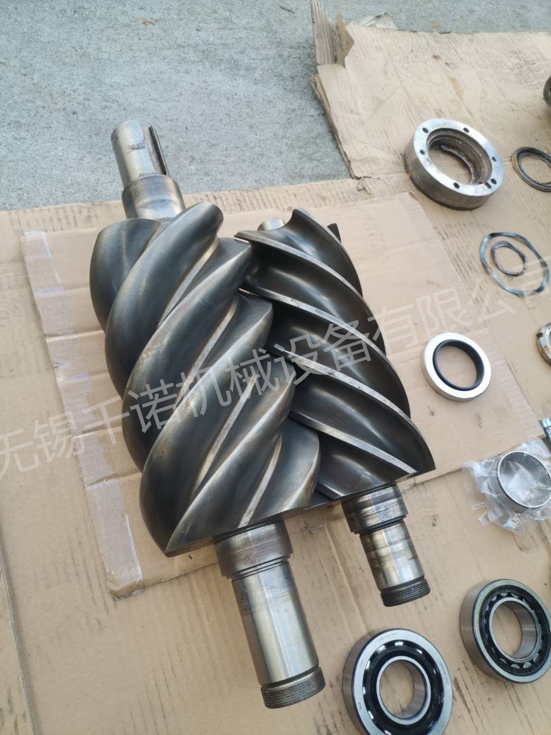 近日,接到無錫錫山區(qū)某客戶反映螺桿機一直高溫報警還伴有異響,該客戶機型為TMC 37KW,客戶現(xiàn)場進行簡單的降溫處理后依然不起作用,在和客戶溝通好準(zhǔn)確的維修時間后,特意安排我們的工作人員給該廠空壓機進行檢查維修,發(fā)現(xiàn)因空壓機長時間運行導(dǎo)致機頭內(nèi)部螺桿兩端軸承磨損嚴重,導(dǎo)致軸承無法固定在機頭兩端。在電機帶動螺桿運行時因螺桿兩端軸承磨損嚴重?zé)o法固定,隨螺桿并轉(zhuǎn)產(chǎn)生異響。還好客戶發(fā)現(xiàn)及時,電機險些過載并沒有造成更大的損壞。