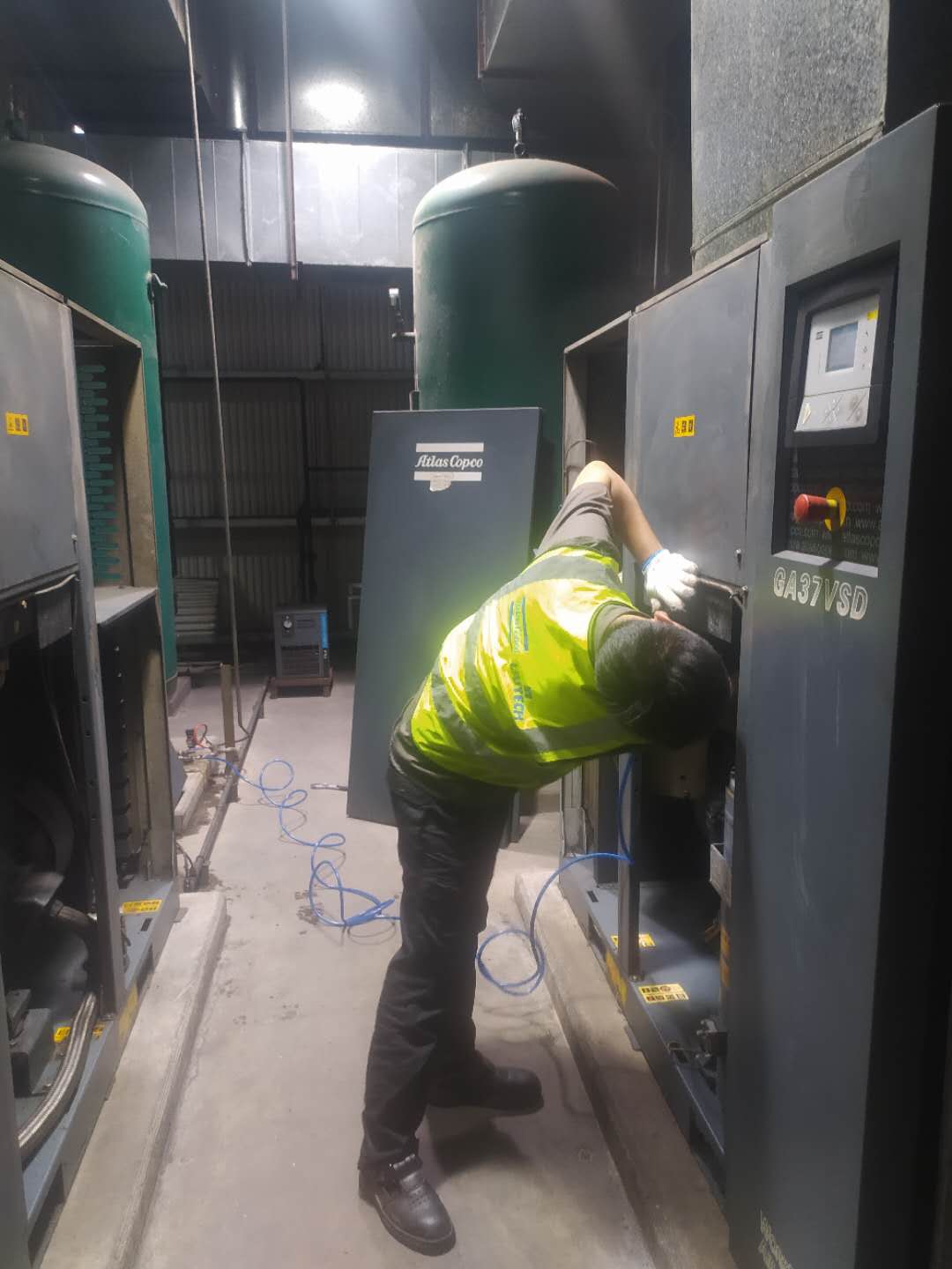 近日,上海一客戶阿特拉斯55KW空壓機(jī)到了維護(hù)保養(yǎng)的時(shí)間,我司在維護(hù)保養(yǎng)過(guò)程中發(fā)現(xiàn)該客戶壓縮空氣中的雜質(zhì)有些,保養(yǎng)過(guò)后經(jīng)過(guò)排查是管道精密過(guò)濾器太久沒(méi)有更換,使得壓縮空氣中的油和雜質(zhì)沒(méi)有充分過(guò)濾掉,輸入到總網(wǎng)中。在和客戶溝通后,我們先為該阿特拉斯機(jī)組進(jìn)行了大保養(yǎng),更換空濾,油濾,油分條專(zhuān)用機(jī)油,并對(duì)該管道過(guò)濾器進(jìn)行了更換濾芯,簡(jiǎn)單處理了下殼體內(nèi)的雜質(zhì)。經(jīng)過(guò)處理后,機(jī)器運(yùn)行良好,問(wèn)題解除。
