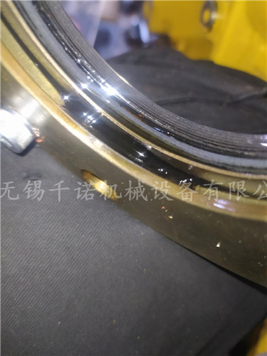 帶回的螺桿主機(jī),我司的專為維修師傅將其拆開,逐一檢修,發(fā)現(xiàn)軸封的橡膠因?yàn)楦邷貙?dǎo)致?lián)p壞漏油,確定好后,進(jìn)行密封測試,測試完無異常后。將所有的機(jī)械密封位置,從新打上專業(yè)密封膠,更換相應(yīng)型號(hào)的軸封、軸套,問題解決。