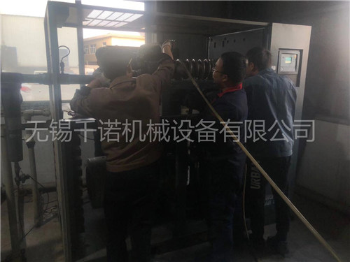 近日接到安徽馬鞍山一客戶的空壓機問題反映,該工廠空壓機機型為阿特拉斯GA55+水冷螺桿空壓機,客戶反映空壓機運行時一直超溫,卸載溫度過高導(dǎo)致加載后累計溫度越升越高,導(dǎo)致高溫報警停機。與客戶確認(rèn)好維修時間后,到達現(xiàn)場進行維修,發(fā)現(xiàn)因為長時間高溫運行導(dǎo)致水冷卻器里含有大量水垢,空壓機在加載的時候機油濾清器有堵塞的聲音,檢測水壓是發(fā)現(xiàn)只有1公斤的水壓(廠家參數(shù)規(guī)定水壓在0.2兆帕以上),更換新的水冷卻器、機油濾清器后,在水塔位置加裝一個新的加壓水泵從新鋪設(shè)新的水路,維修完后機組正常運行,問題解決。